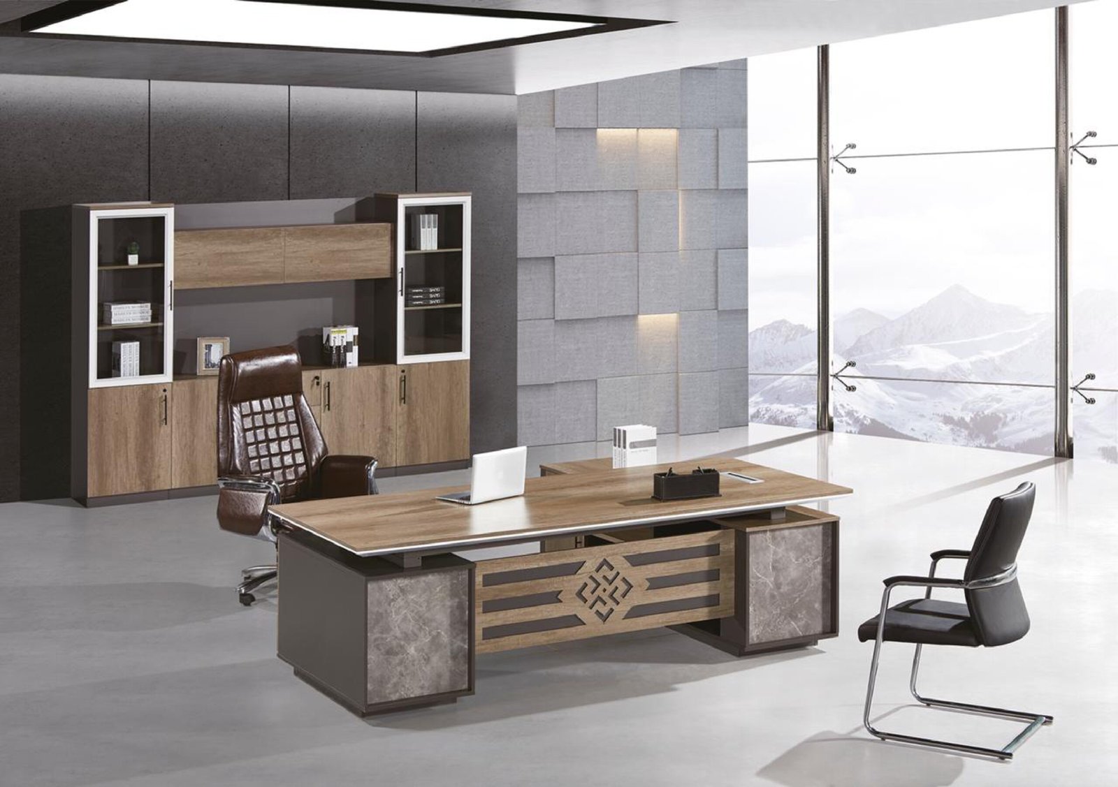 | طقم مكتب + دوالب + طاولة شاي :الالوان المتوفره بيج + جملي مع ملحق اجباري يمين او يسار ترابي مع ملحق اجباري يمين او يسار :المقاسات المتوفره 240*100*76 240*100*76 AG-405 (R) الموديل |